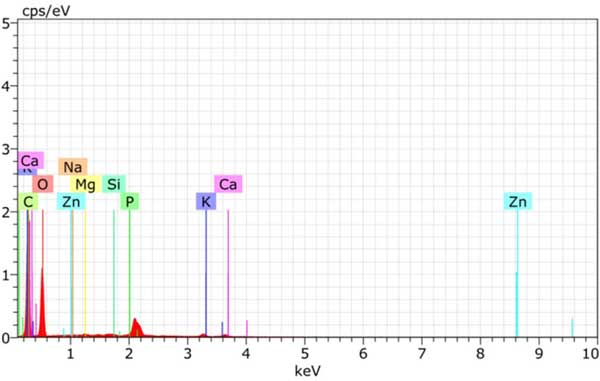 揮發(fā)物含量直接在自動近似分析儀中測量。當爐油樣品燃燒完全時,不可燃殘留物通過灰分含量反映出來。在此過程中使用可承受300至400℃溫度的高溫馬弗爐。在空氣中存在氧氣的情況下,某些物質(如水和其他揮發(fā)性元素)會燃燒,而其他物質(包括有機分子)會蒸發(fā)。通過比較灰化前后樣品的重量可以計算出樣品中的灰分含量。固定碳的計算方法是從100中減去揮發(fā)性物質的百分比、水分含量和灰分含量;钚蕴康亩逊e密度是借助密度計。用能量色散X射線分析法分析活性炭的化學成分圖2。活性炭的EDAX分析具有由C、O、Zn等組成的元素。