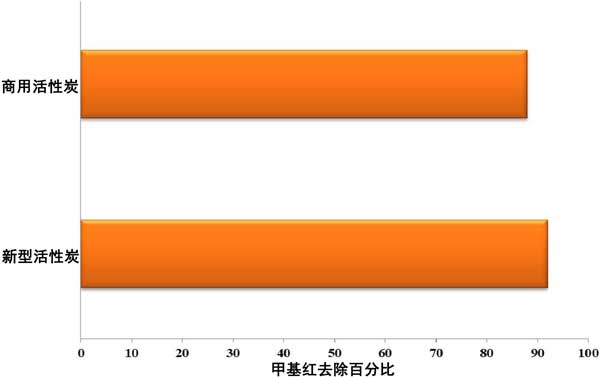 經過批量吸附測試數(shù)據后,將新型活性炭的結果與當?shù)乜捎玫纳逃没钚蕴窟M行了比較。圖4表示與活性炭的比較實驗數(shù)據。