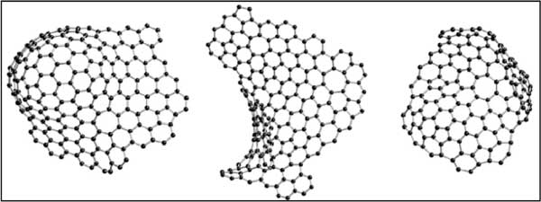 活性炭的具體原子構(gòu)型尚不清楚,盡管它在水和空氣凈化方面具有重要的商業(yè)意義。通過(guò)熱解法制備的碳的構(gòu)型。她指出,這些碳可以分為兩個(gè)不同的組,即石墨化和非石墨化;钚蕴垦苌龅奶际欠鞘,這意味著即使在非常高的溫度(≥3000℃)下,它也可以轉(zhuǎn)變?yōu)榻Y(jié)晶石墨。中子衍射研究表明,非石墨化碳具有類(lèi)似于富勒烯的骨架,如圖1所示。這種配置將闡明碳的微孔結(jié)構(gòu)及其其他特性。從x射線和中子衍射研究中獲得的衍射數(shù)據(jù)已根據(jù)由非六角環(huán)組成的結(jié)構(gòu)進(jìn)行了闡明,但無(wú)法提供任何明確的證據(jù)表明原子以五角環(huán)或六角環(huán)的形式鍵合。