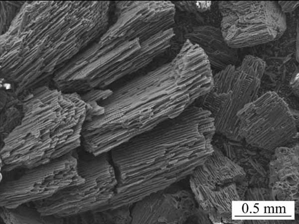 分析級試劑,包括硫代硫酸鈉、氫氧化鈉、硫酸、銅硫酸根和金標準溶液均來自中國上海國藥化學試劑有限公司(SCRC)。這些吸附試驗中使用的椰殼活性炭是分析級的。掃描電子顯微鏡(SEM)圖像顯示了活性炭的微觀結構(圖1);钚蕴烤哂休^大的比表面積(1000−1500m2/g)和清晰的顆粒。