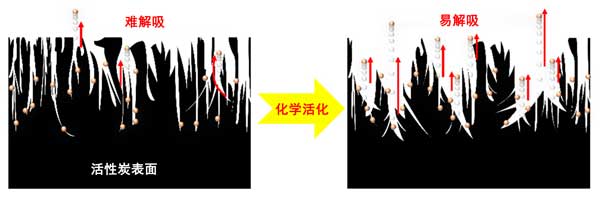 活性炭表面微孔體積與外部孔體積之比越高,解吸反應(yīng)就越困難,因?yàn)橐盐降臍怏w必須通過復(fù)雜而長的通道釋放。相反,較低對應(yīng)于表面上較大體積的大直徑孔。即使吸附物被深深地吸附到活性炭表面,解吸反應(yīng)也可以沿著寬闊而簡單的通道輕松快速地進(jìn)行。也就是說,活性炭表面的比率越高,解吸反應(yīng)受到的抑制程度就越大,從而導(dǎo)致吸附容量越高。