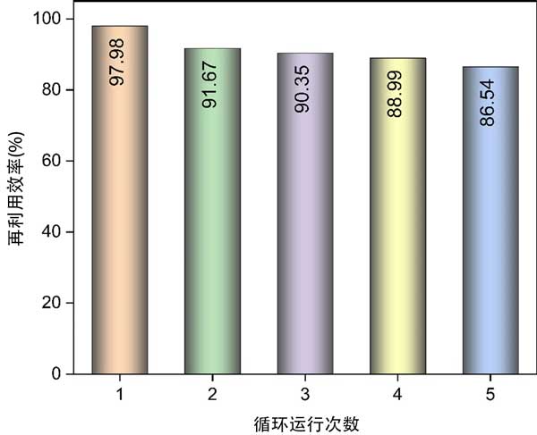 吸附劑的可重復(fù)使用性和吸附穩(wěn)定性在評(píng)估所開(kāi)發(fā)方法的實(shí)際適用性方面起著至關(guān)重要的作用。事實(shí)上,吸附劑的可重復(fù)使用性能是實(shí)際應(yīng)用的首要標(biāo)準(zhǔn),并影響吸附過(guò)程的總體成本。活性炭苯蒸汽吸附的再利用效率是在五個(gè)連續(xù)的回收循環(huán)后確定的。如圖4所示,經(jīng)過(guò)五次連續(xù)回收過(guò)程后,活性炭苯蒸氣的再利用效率為86.54%。強(qiáng)大的可重復(fù)使用性和吸附穩(wěn)定性表明活性炭吸附劑和苯吸附物之間存在范德華力或π-π相互作用。相反,不完全的再生過(guò)程可歸因于吸附表面上永久鍵的形成,導(dǎo)致吸附基團(tuán)的不可逆轉(zhuǎn)化。換句話(huà)說(shuō),一些在再生過(guò)程中未解吸的化學(xué)結(jié)合吸附物可能會(huì)堵塞孔隙,導(dǎo)致殘留物形成。